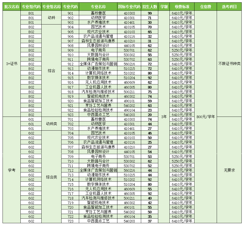 备注:最终招生计划以省教育考试院发布的专业目录为准;3+证书招生专业均不限证书类型。