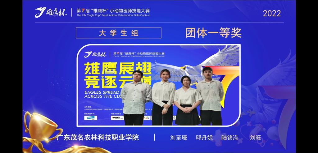 近日,第七届“雄鹰杯”全国小动物医师技能大赛总决赛落下帷幕。我校动物科学系曹嫚嫚、白红英老师指导的2020级刘旺、刘至壕、邱丹妮、陆锦滢团队经过紧张激烈角逐,最终荣获全国大学生组团体一等奖。此次大赛分为大学生组和临床组,其中大学生组共有91所高等农林高校派出参赛代表队共360名选手同台竞技。