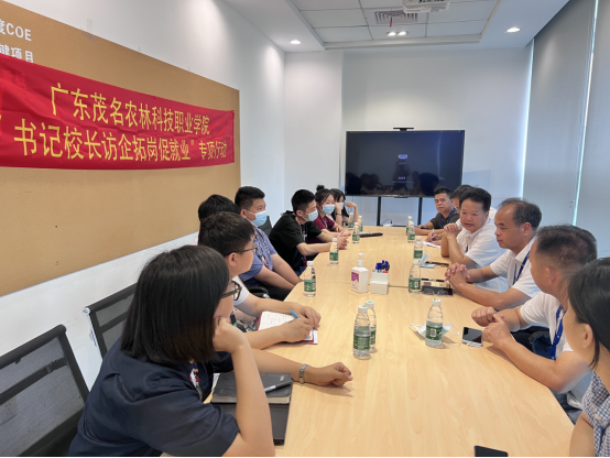 “你们企业用人需求与我们学校很多专业毕业生匹配度很高,我们学校的孩子不仅学习刻苦努力而且还能吃苦,希望企业和学校走得更近,我们可以多频次地组织线上线下专场招聘会促进大学生就业创业。”董书记介绍,广东茂名农林科技职业学院有企业所需求的电子商务、财务管理、工业机器人技术、数字媒体技术等方面的人才,希望企业能与学校共同建立人才培养机制,学校根据企业用人需求,调整人才培养方案,订单式培养企业需要的人才,与企业在产学研全方位合作。企业方表示,农林的学生能严格遵守作息时间,提前到岗,而且能吃苦,不怕累,任劳任怨。希望今后能招到更多的学生到企业实习工作,也希望能与学校在进一步加深合作,实现校企双赢。