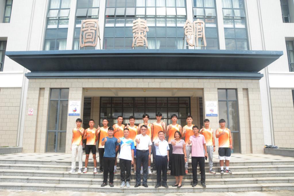 (上图:院长林里泉,基础教学部负责人黄彦钧与全体教练员、运动员出征前合影留念)