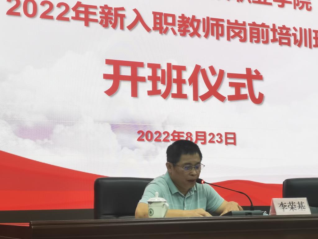 组织人事部负责人李荣基同志在开班仪式上对新教师的加入表示欢迎,强调了新教师岗前培训的必要性,宣读了新入职教师岗前培训实施计划,要求大家合理安排教学科研等工作,按时参加培训学习;各系部、各部门要高度重视培训工作,确保新教师尽快适应教育教学工作。