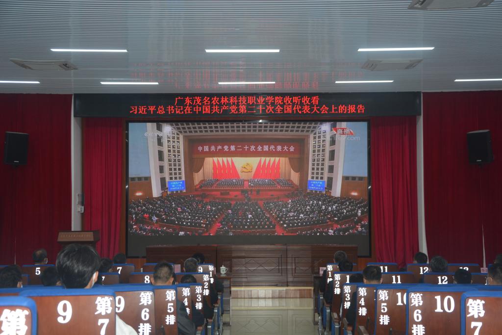 2022年10月16日上午,中国共产党第二十次全国代表大会在北京隆重召开。广东茂名农林科技职业学院组织全体党员干部和师生收听收看开幕会,认真聆听习近平总书记代表第十九届中央委员会所作报告。