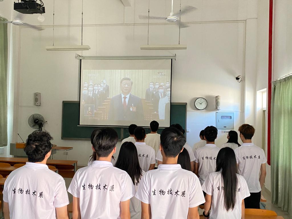 上图:生物技术系师生收看党的二十大开幕会盛况
