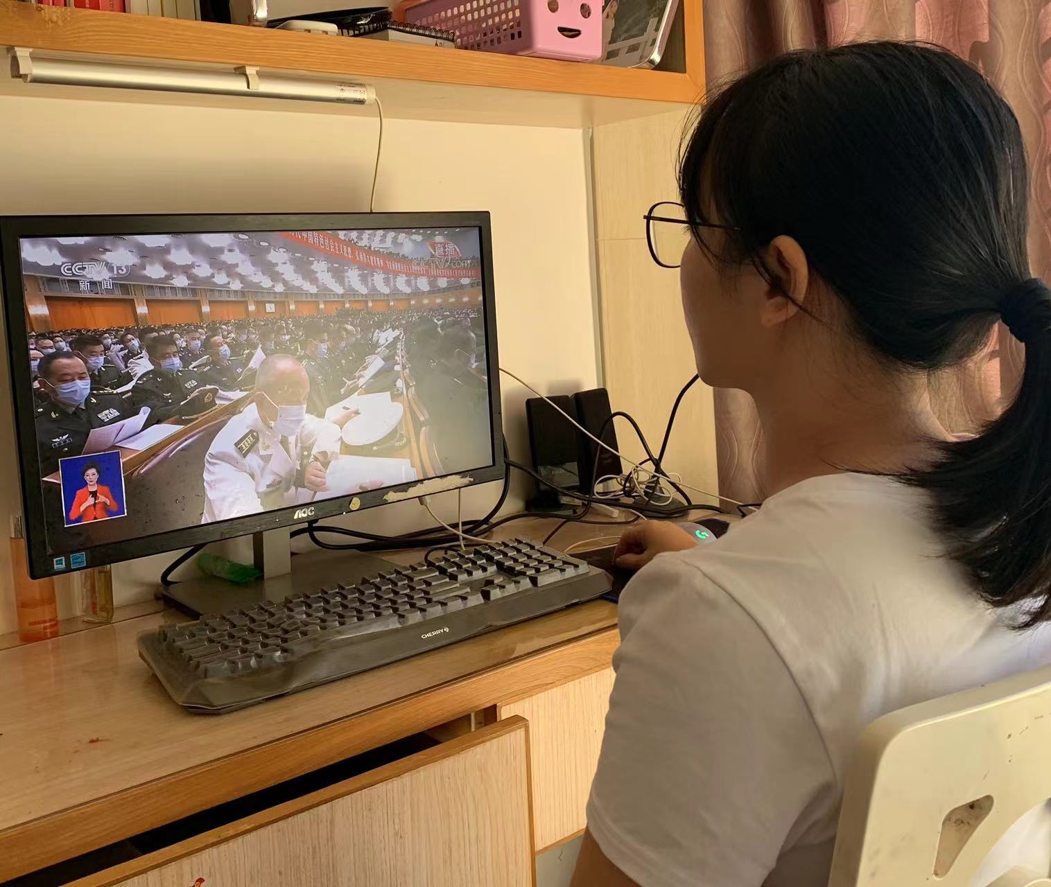 上图:动物科学系学生收看党的二十大开幕会盛况