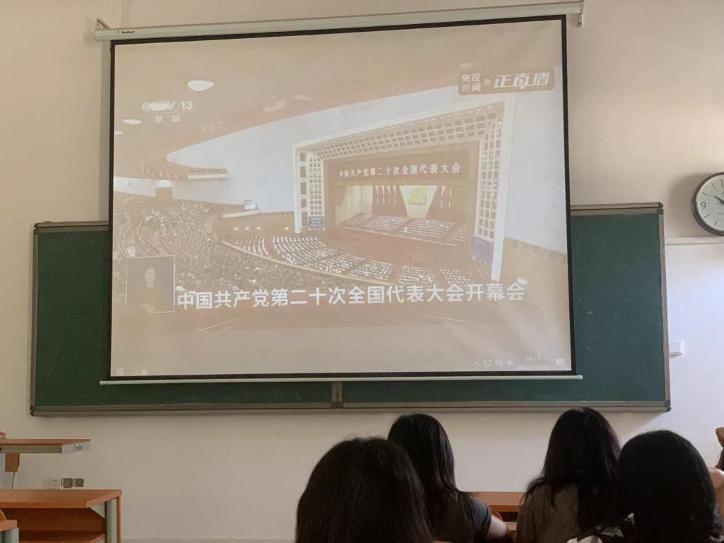 上图:学院领导班子、中层干部、学生党员代表集中收看党的二十大开幕会盛况