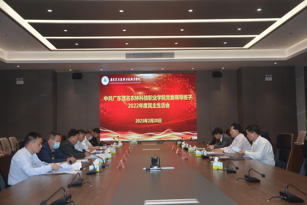 为深入学习习近平新时代中国特色社会主义思想和贯彻落实党的二十大作出的重大决策部署,2月20日下午,广东茂名农林科技职业学院党委在行政楼二楼会议室召开2022年度领导班子民主生活会。市委教育工委第四督导组组长、市委教育工委委员、市教育局党组成员、副局长张镇彪同志一行到会督导。学院党委书记董荣权同志主持会议,学院党委领导班子成员参加会议,学院党办、纪检、组织人事部门负责人列席会议。