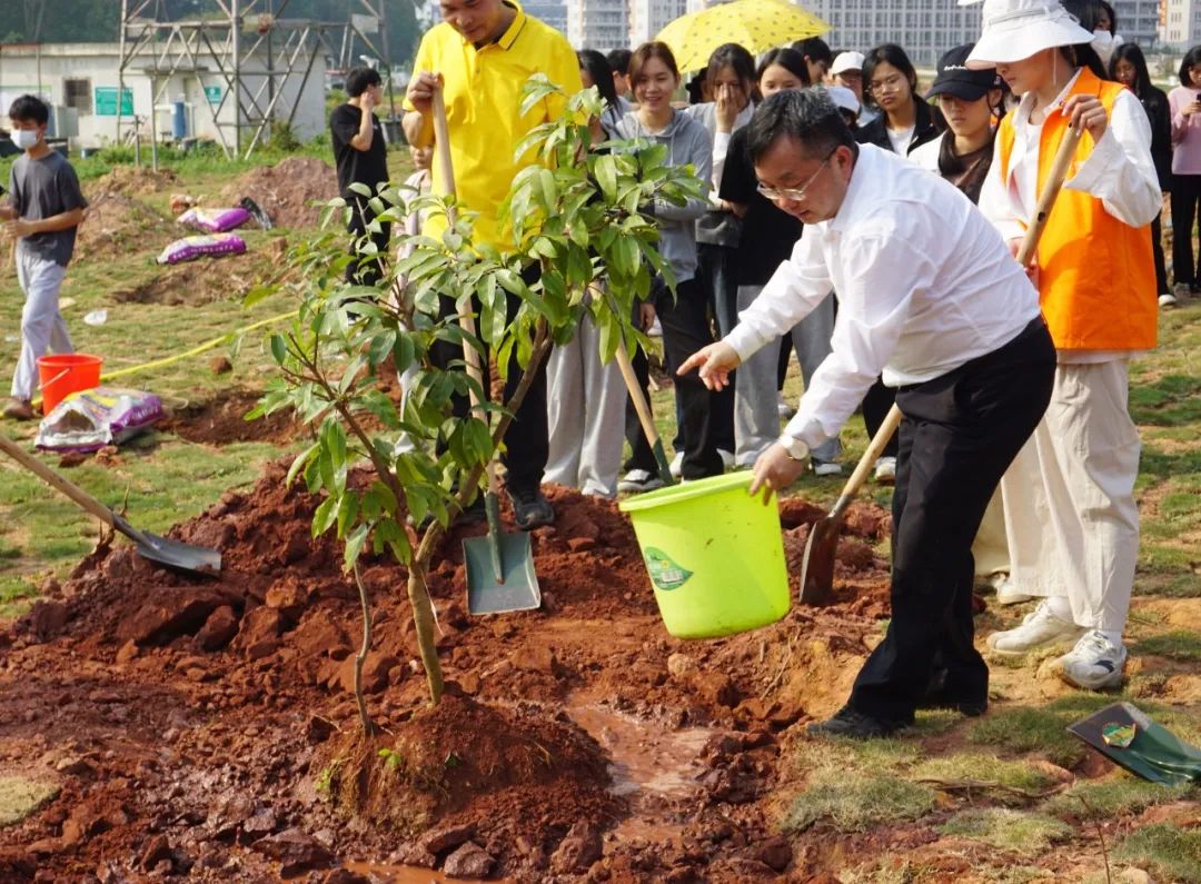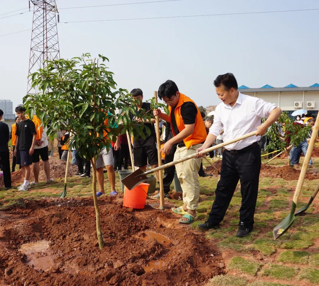 春风吹拂,校园生机勃发,一派绿意盎然。3月10日,学院党委书记董荣权、院长林里泉等校领导和师生代表约300人一起来到学校“五棵树”生态农场实训基地,一齐参加义务植树活动。