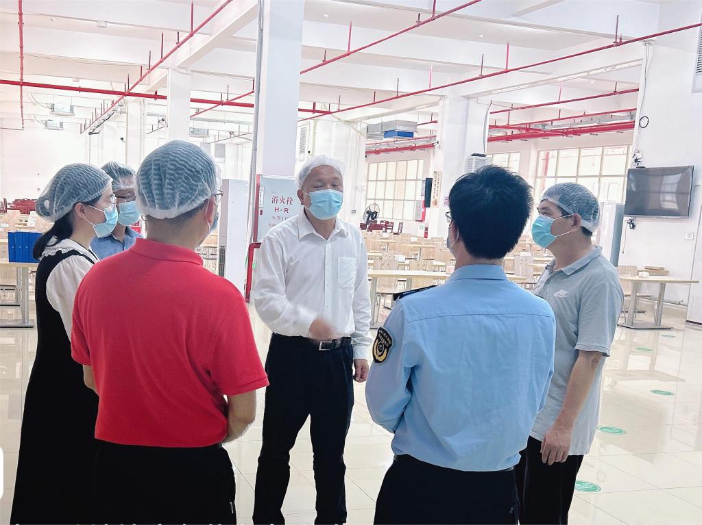 3月22日下午,茂南区委常委陈伟敏在区科工商务局副局长周怀尚、公馆镇副镇长刘丹蕾、公馆市场监督管理所所长叶一诗等的陪同下,到我校调研食品安全工作。陈伟敏一行深入培训食堂内厨、仓库和食品安全公示栏、留样区等区域,详细了解饭堂食品食品安全管理状况,询问食品安全责任制落实情况。