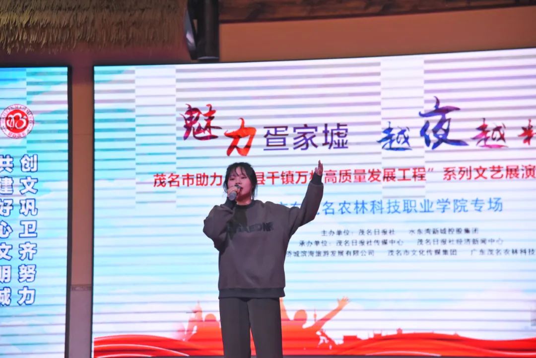 2023年3月29日晚,以“魅力疍家墟 越夜越精彩”为主题的茂名市助力“百县千镇万村高质量发展工程”系列文艺展演(第十二场)——广东茂名农林科技职业学院专场,在疍家墟·年例广场举行。我校师生为市民献上了一场精彩的文艺演出,一同畅想“夜”的美好。