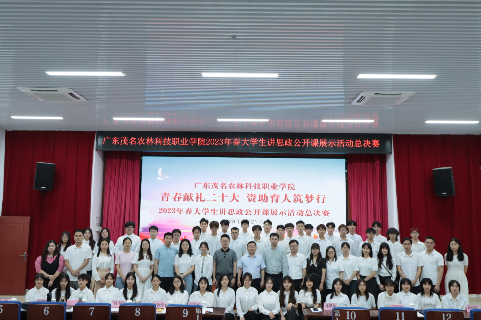 为深入学习贯彻党的二十大精神,推进思政课高质量发展,构建“大思政”育人格局,近段时间以来,由马克思主义学院、学生工作部主办的2023年广东茂名农林科技职业学院大学生讲思政公开课初赛、半决赛和总决赛陆续举行。其中,总决赛在行政楼一楼大会议室举行。学院院长林里泉、学生工作部负责人丁富贤、马克思主义学院负责人余绍标出席本次大赛,学生工作部王宇杰、教务部刘婧、校团委白敏筠、智能工程系陈海凤以及马克思主义学院张豪杰、李悠、孙宇俊等七位老师担任大赛评委。