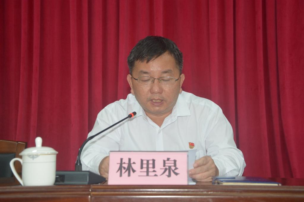 (上图:学院党委副书记、院长林里泉传达上级关于全面从严治党有关会议精神)