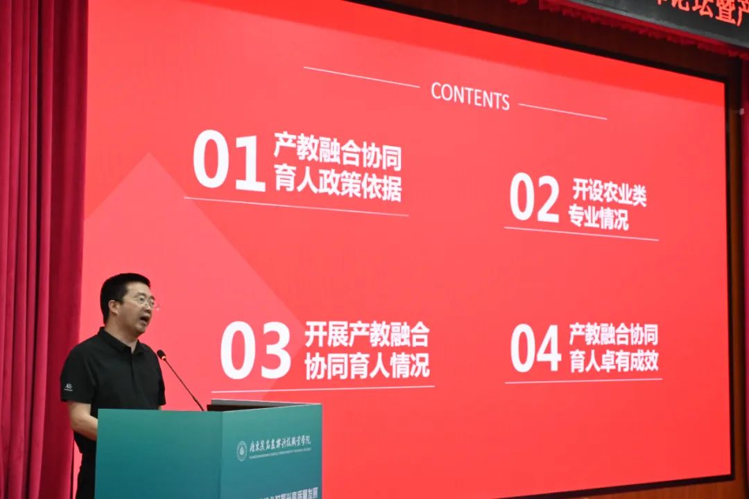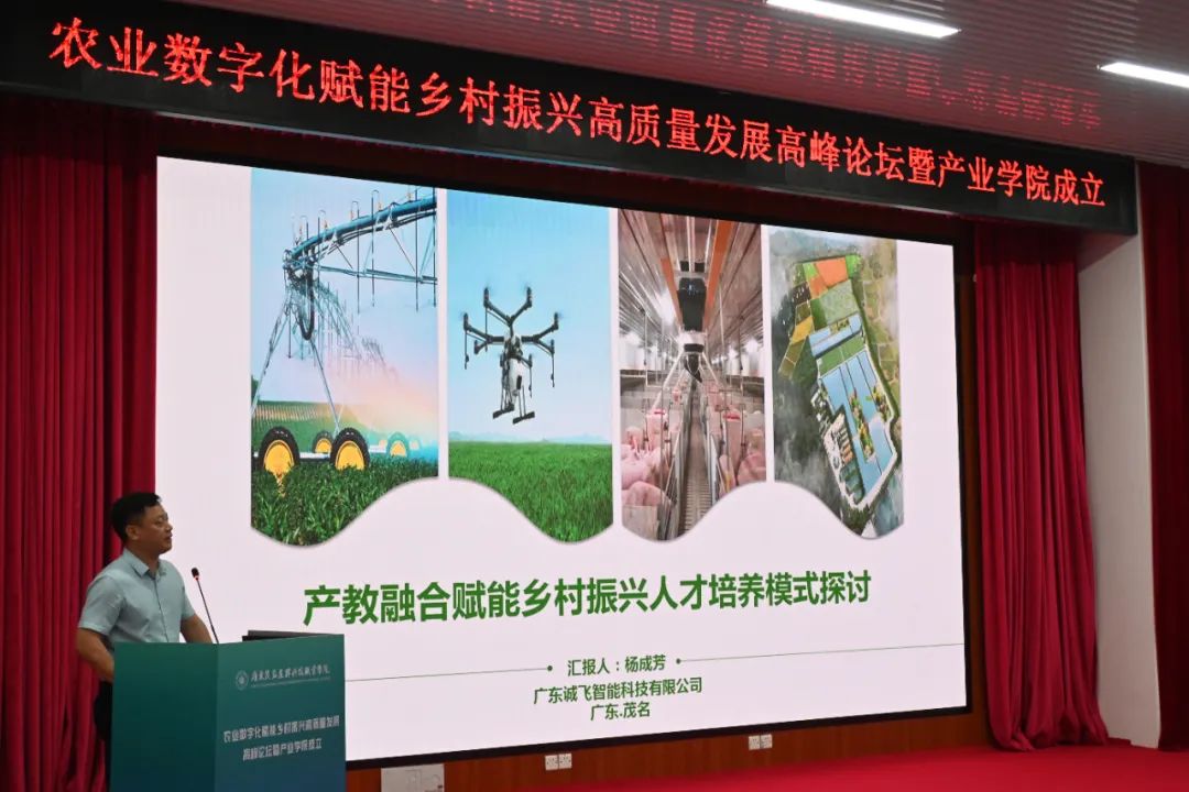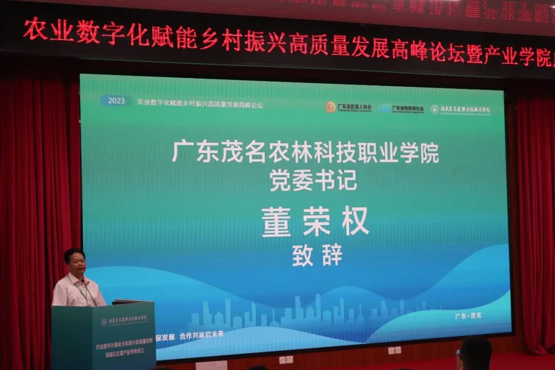 董荣权表示,广东茂名农林科技职业学院坚持把“专业群”建在“产业链”上,联合“政校企研协”多方力量,积极构建“学校+N个产业学院”的办学新格局,新成立智能机器人产业学院和智慧农业产业学院,致力于充分发挥学院教育资源,汇集五方力量服务乡村振兴,探索农业数字化赋能农业高质量发展。