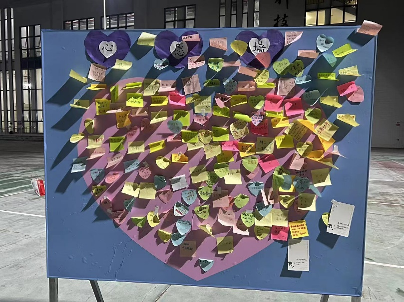 在心理投射-讲故事中,同学们讲出了一个又一个精彩的故事,在这些故事中有爱情的甜蜜,有志同道合的友情,也有对未来的憧憬等等。在“以祝换花,交换能量”(“以烦换花,交换浪漫”)中,看到了学生们满满的正能量,不仅要向所有的烦恼说byebye,也要向所有的快乐说HiHi。在“撕下标签,拥抱不设限的人生”中,一次拥抱撕掉一个标签,也换来了一个不设限的人生。在“心向未来-心愿墙”活动中,大家都真挚的写下了自己的心愿:“大广赛过”“想给大家带来快乐,并成为一个温柔强大的人”“专插本成功上岸”“家人平安喜乐”“一切顺遂,心想事成”……