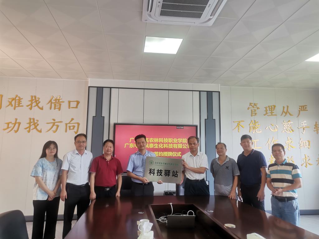 (上图:学院授予广东中轻枫泰生化科技有限公司“科技驿站”牌)