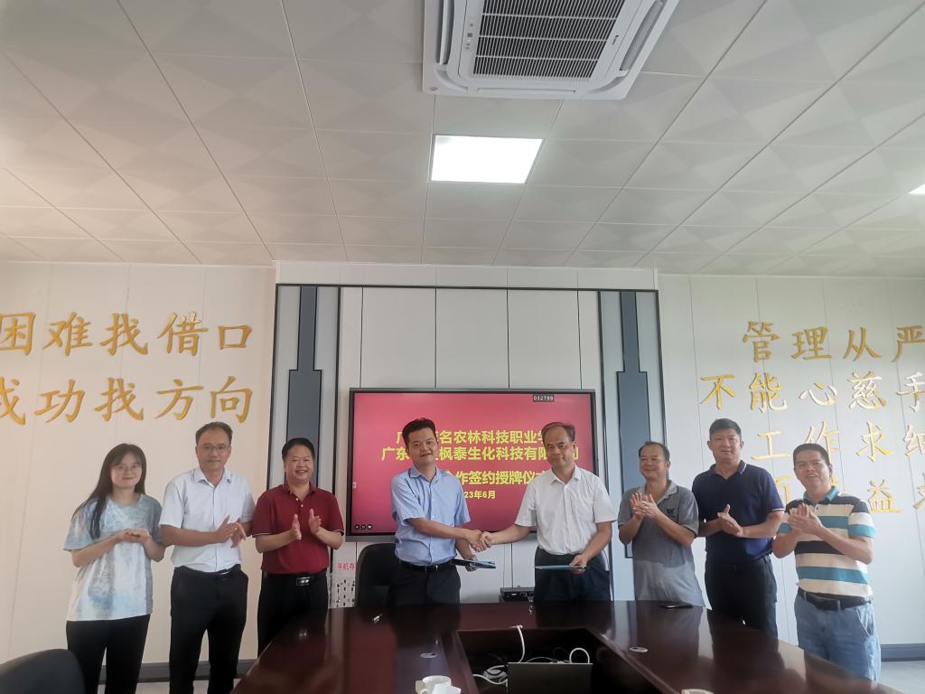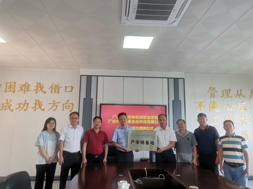 随后,在校企双方的共同见证下,签订了校企合作协议,学院授予广东中轻枫泰生化科技有限公司“产学研基地”和“科技驿站”牌。