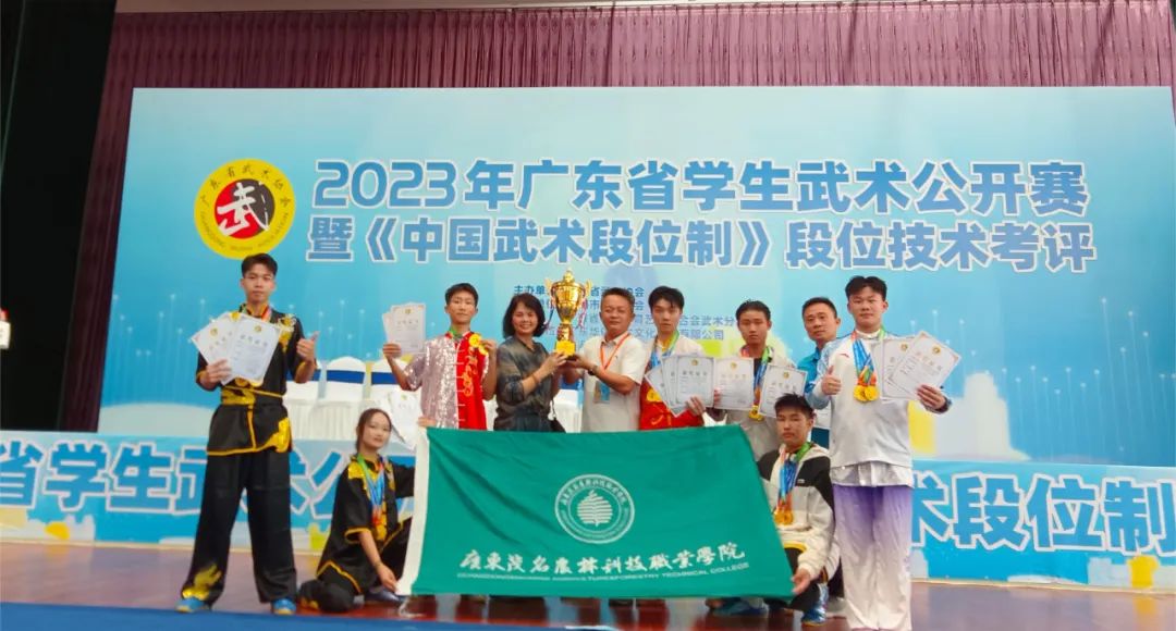 2023年11月3日至5日,由广东省武术协会主办,珠海市体育总会、广东省学生体育艺术联合会武术分会支持的2023年广东省学生武术公开赛暨《中国武术段位制》段位技术考评在珠海市第一中学平沙校区(珠海市外国语学校)隆重举行,赛事吸引了广东省各大高校武术强队。我校组成了由基础教学部主任黄彦钧同志担任领队,李程和苏燕健两位老师担任教练的参赛队伍,在比赛中顽强拼搏。经过两天紧张刺激的角逐,我校参赛队伍弘扬刚健有为、勇于拼搏的广茂农林体育精神,追求卓越,奋勇争先,在本次比赛中取得优异的成绩,共斩获12个金奖。