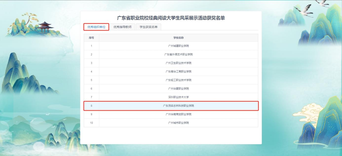 近日,广东省职业院校图书情报工作指导委员会面向全省各职业院校图书馆开展的“阅动青春风采·吟咏经典华章”中华经典阅读风采展示活动评选结果揭晓。在此次活动大赛中,我校荣获“优秀组织单位”,三位学生作品获评三等奖。