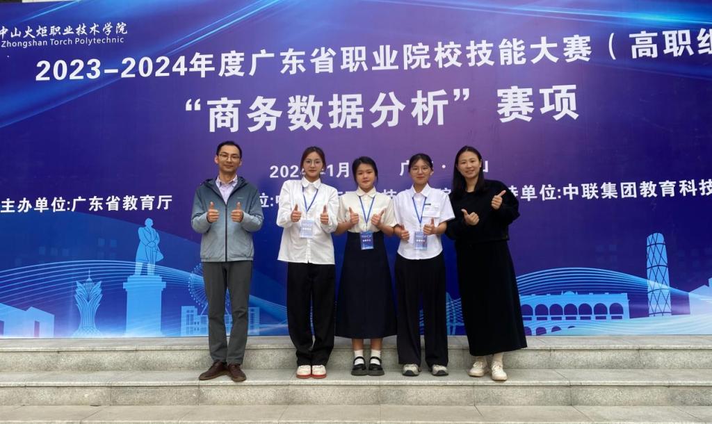 1月6日,由广东省教育厅主办、中山火炬职业技术学院承办的2023-2024学年广东省职业院校技能大赛商务数据分析(高职组)赛项落下帷幕,本次大赛共有66支队伍高职院校代表队的198名学生同台竞技。该赛项我校由许宪章、李东霞教师指导,陈丽铅、周洁、胡以彤学生组成的团队从激烈角逐中脱颖而出,荣获省三等奖。