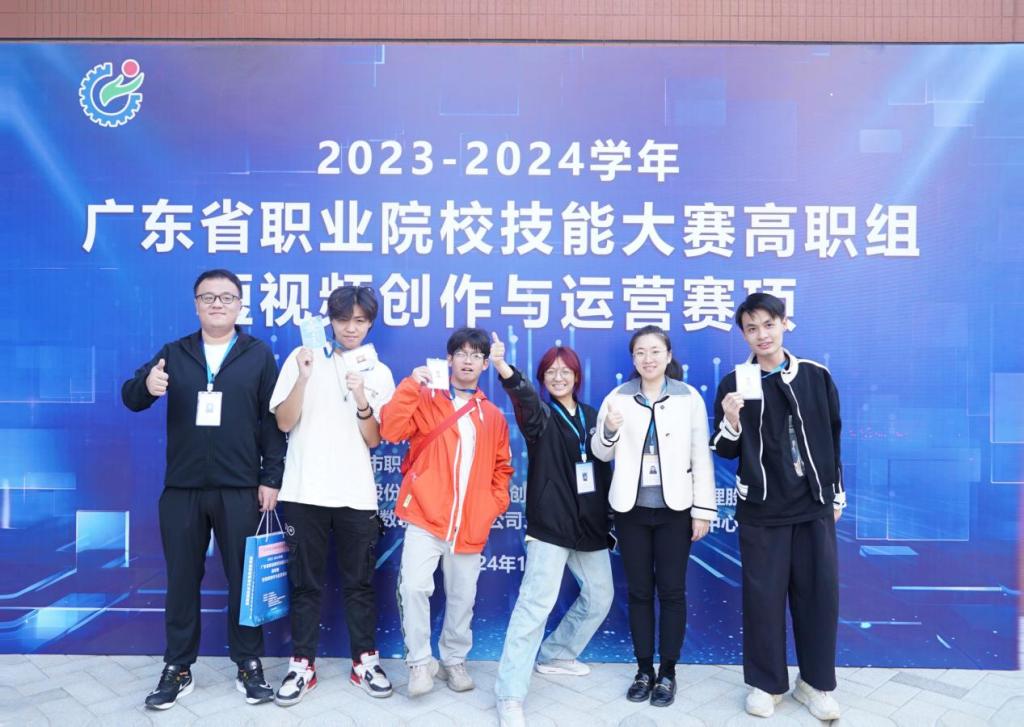 1月13至14日,由广东省教育厅主办、广州城市职业学院承办承办的2023-2024学年广东省职业院校技能大赛短视频创作与运营(高职组)赛项落下帷幕,本次大赛共有全省76所高职院校同台竞技。该赛项我校由冯胜宇、朱广慧教师指导,罗家豪、李宜航、陈文城、符嘉琦组成的参赛队伍从激烈角逐中脱颖而出,荣获省三等奖。