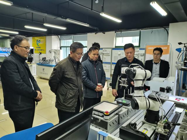 1月27日上午,林业强一行赴广东诚飞智能科技有限公司参观调研。在杨成芳总经理的陪同下,参观了园区内的人工智能技术展示中心,物联网技术展示区,电工上岗证考证中心等,详细了解现代制造业的发展趋势和人工智能的工业应用场景。在座谈会上,杨成芳围绕“岗、课、赛、证、研、创、社、业”八位一体人才培养体系来介绍公司近年的发展情况和校企合作取得的成效。随后,校企双方针对实训室规划建设、师资队伍建设与发展、培训考证业务、搭建顶岗就业人才服务平台等展开深入交流。林业强对诚飞公司的发展及取得的丰硕成果表示充分的肯定,并希望双方在产教融合、校企合作、协同育人方面,积极探索新的合作模式,发挥各自资源优势,共同搭台出力,为社会培养高素质技能人才打下坚实基础。