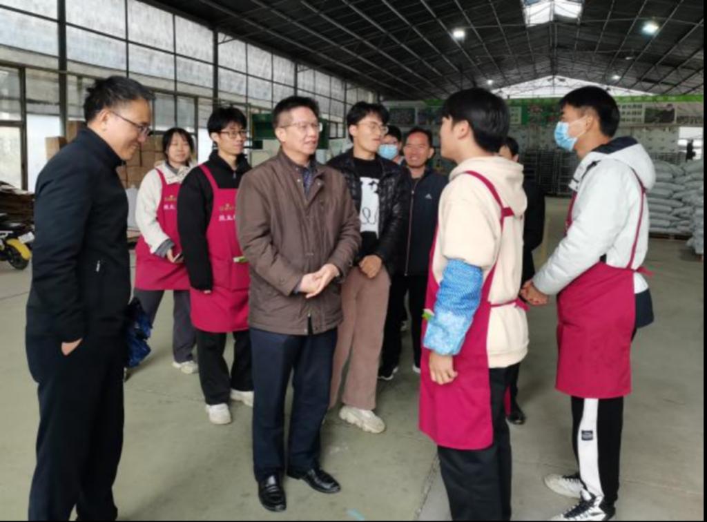(图为林业强一行到广东维生农业股份有限公司调研大学生实习情况)