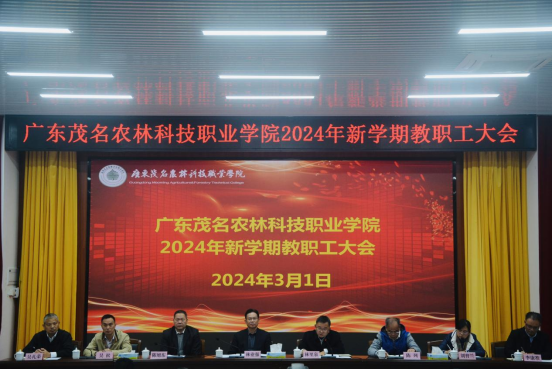 林业强强调,2024年,学院要高举习近平新时代中国特色社会主义思想伟大旗帜,在党委的坚强领导下,深入贯彻落实中国共产党广东茂名农林科技职业学院第一次党员大会精神及本次教职工大会精神,各职能部门、各系要强化责任担当,明确目标任务,抓好工作统筹,切实推动各项重点工作落地落实,坚定不移地朝着“建设现代农林牧渔特色鲜明,食品、经贸、人工智能等学科均衡发展的高水平应用科技大学”的目标而努力奋斗。