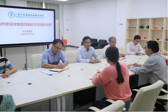 2024年3月18日下午,学院党委书记林业强、学院副院长陈列到经济管理系进行调研指导工作,教务部主任李康准、创新创业教育中心负责人丁富贤、校企合作办公室副主任钟卫林陪同。