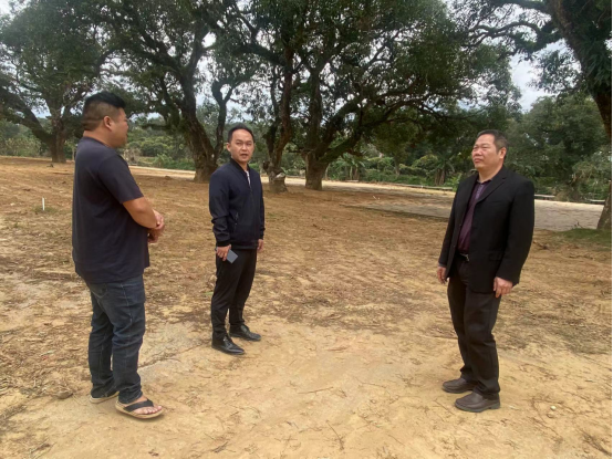 (图:陈旭东一行参观公垌村的仙桃古树群)
