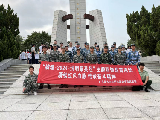 青山有幸埋忠骨,翠柏无声祭英魂。为缅怀先烈,赓续红色血脉,传承奋斗精神,学院武装部于4月2日在茂名市烈士陵园举行“铸魂·2024·清明祭英烈”主题宣传教育活动,学院退役复学士兵代表共计20余人在老师的带领下参加了活动。