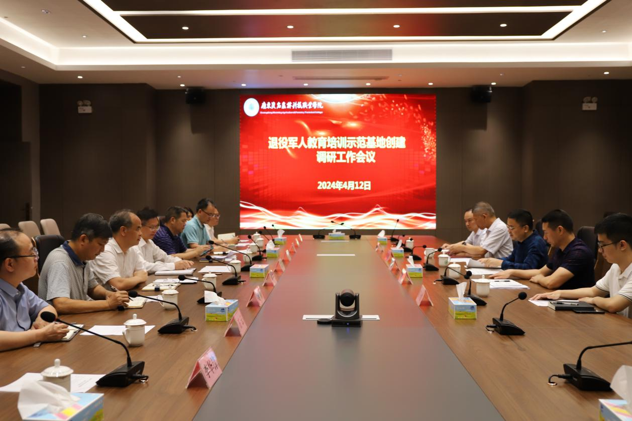 2024年4月12日,茂名市退役军人事务局副局长林文泽率队深入学院,就退役军人教育培训示范基地的创建工作进行调研。学院党委书记林业强,党委专职副书记陈旭东,党委委员、副院长陈列及相关部门负责人陪同调研。此次调研不仅是对学院退役军人教育培训工作的全面检阅,更是对推动新时代新征程退役军人工作高质量发展的一次深刻探讨。