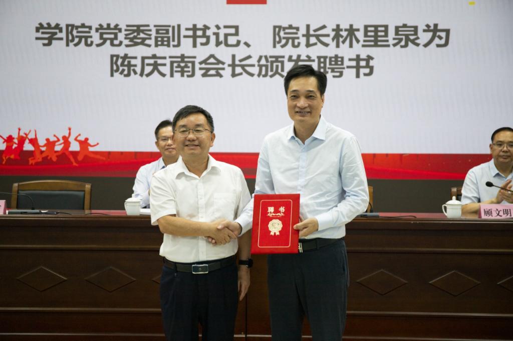 仪式上,林业强和陈庆南还共同为30名创新创业委员颁发了聘书。陈庆南与与会师生分享了他成功创业的故事,激发了师生的创新创业热情。