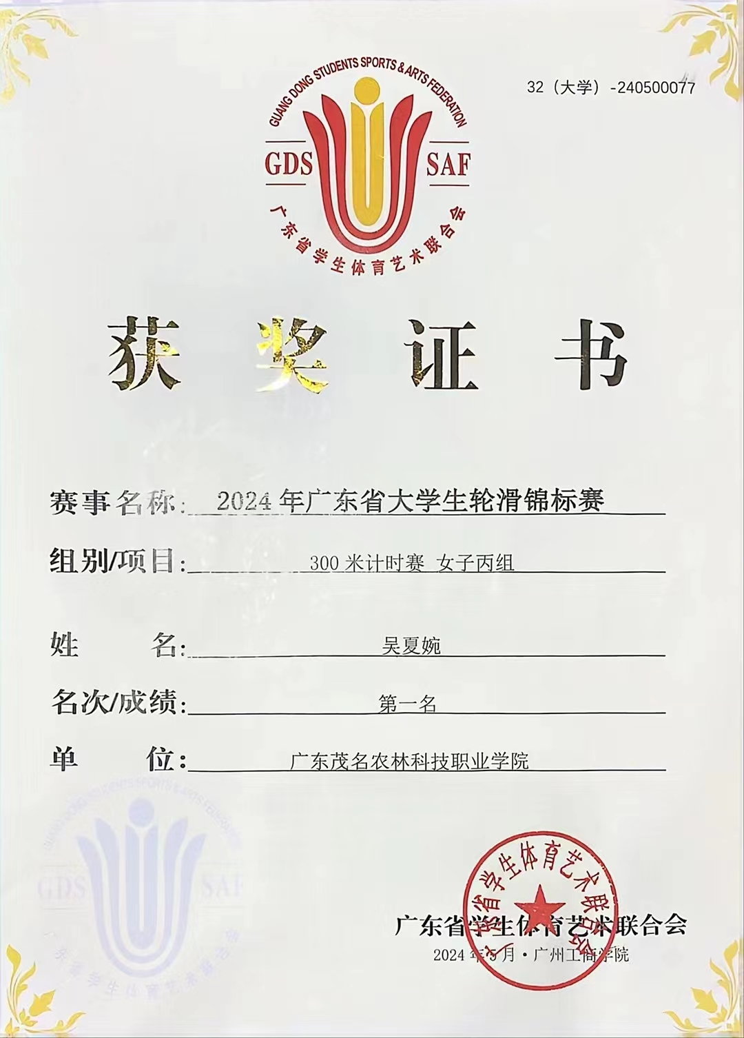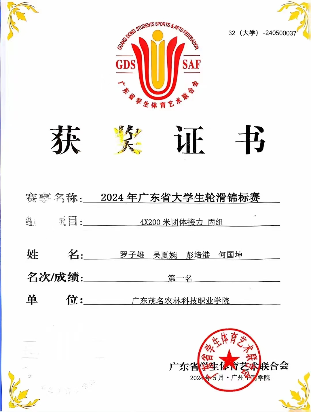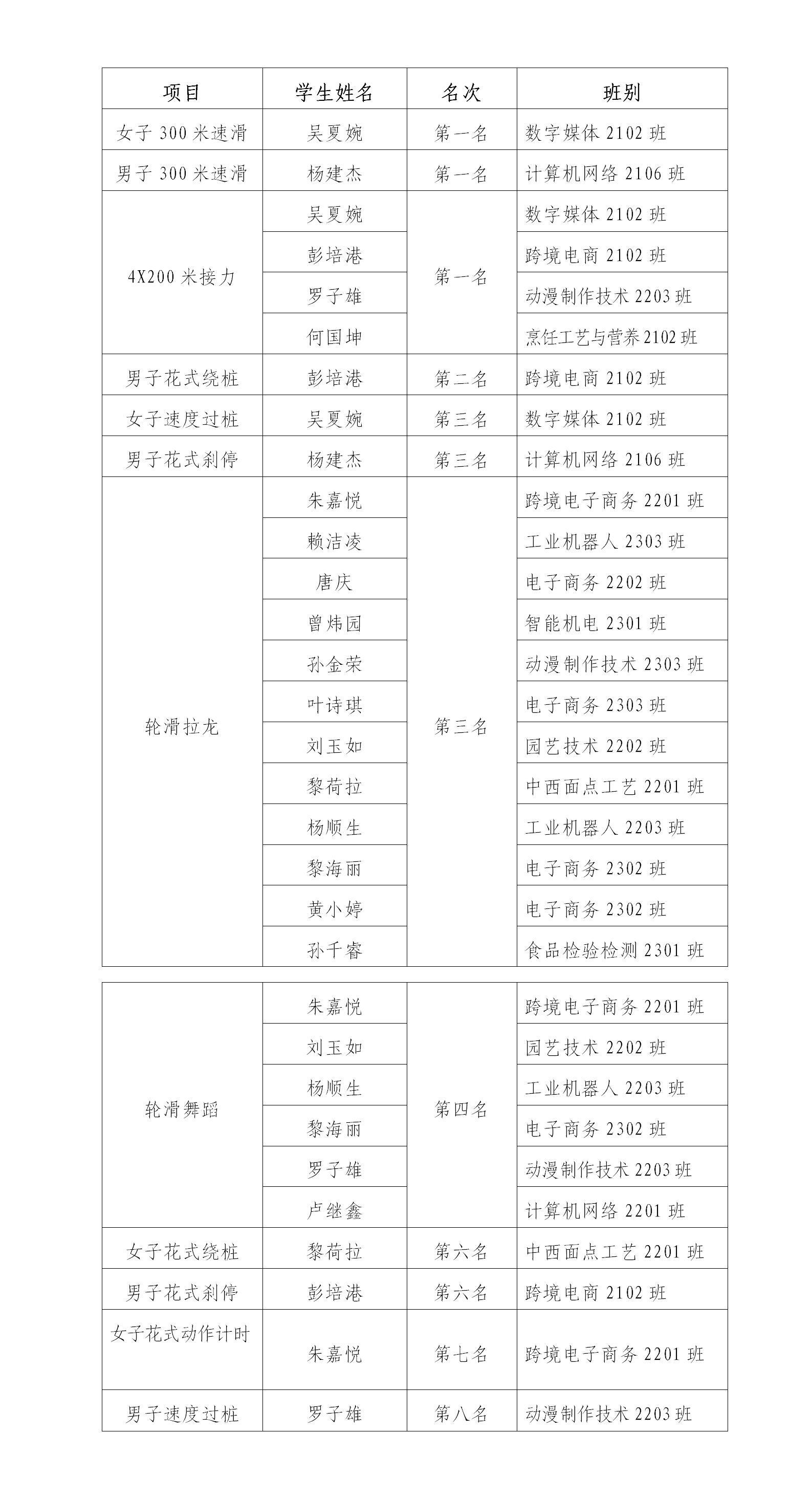 图:我院学生在2024年广东省大学生轮滑锦标赛上获佳绩