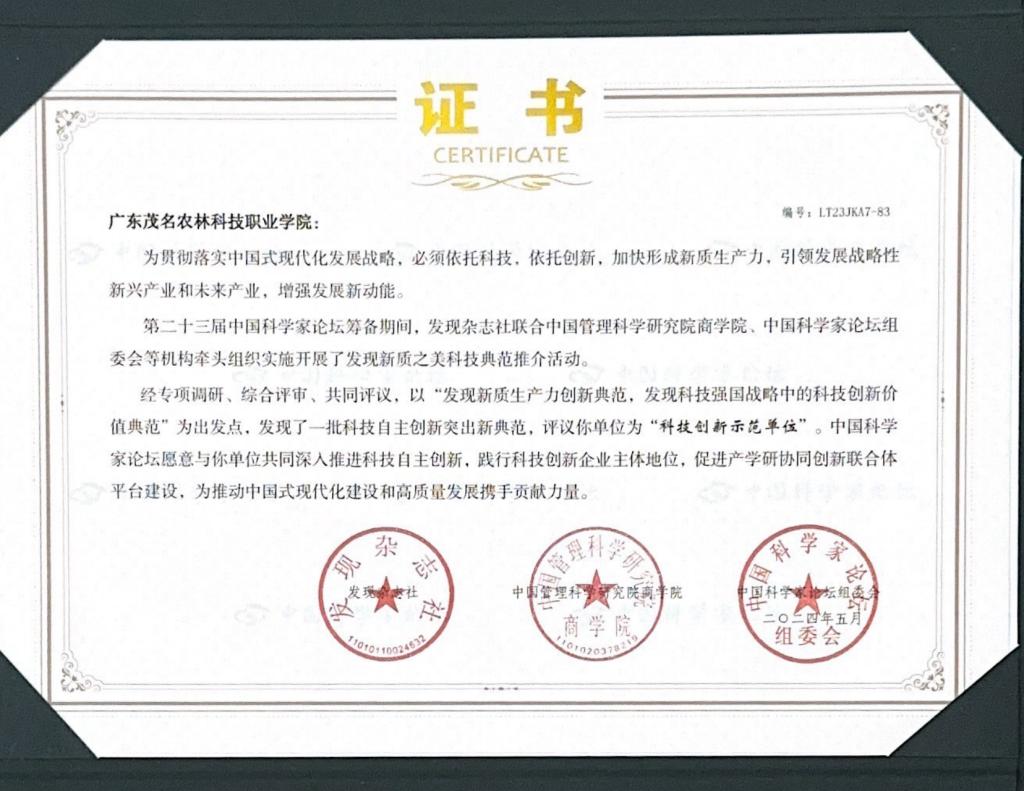 近几年来,我院大力开展科技创新和科技攻关,助力乡村振兴。不断推进科研工作制度化、规范化、科学化管理,先后制订了纵向、横向和包干制等科研项目管理办法,设立专项资金,每年开展校级教科研项目、质量工程项目申报和建设;主动配套资金,激励教师申报各级教科研项目。《基于虚拟仿真技术的畜牧兽医专业群职业技能培训考核与竞赛研究》《基于大数据技术的教育模式创新与研究》等8个项目获教育部立项;《果园生产自动化管理系统的研究与实现》《动物源多杀性巴氏杆菌的全基因组测序及分析》《基于IP助农的粤西文创产品开发研究》等23个项目获省级立项;《油茶籽壳发酵生产木糖醇的关键技术研究》《桉树林地面源污染防治与土壤肥力提升技术研究与应用》《除草剂对土壤微生物及香蕉枯萎病发生的影响》等31个项目获市级立项。鼓励教师大力践行“成果入农户、论文写大地”的科技创新服务理念,面向粤西地方经济发展的主战场,重点围绕茂名“五棵树一条鱼一桌菜”特色产业进行科技创新和科技攻关,点燃乡村特色产业发展引擎。