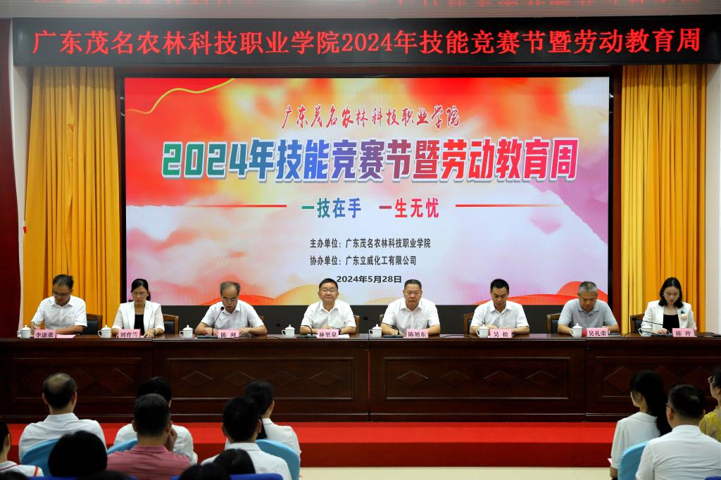 为进一步深化职业教育改革,大力弘扬工匠精神,营造“人人皆可成才、人人尽展其才”的良好氛围。5月28日上午,由我院主办,广东立威化工有限公司协办的2024年技能竞赛节暨劳动教育周开幕式在行政培训楼一楼会议室隆重举行。学院党委副书记、院长林里泉作致词,开幕式由学院副院长陈列主持。学院在家班子成员,各部门负责人、广东立威化工有限公司代表、参赛师生代表参加开幕式。