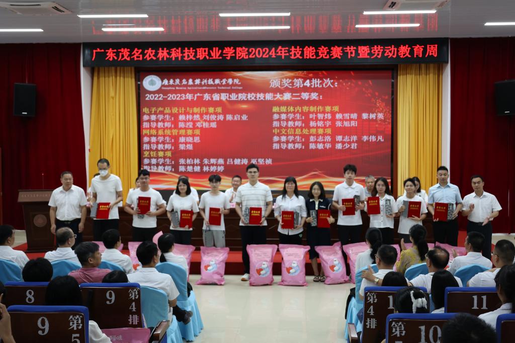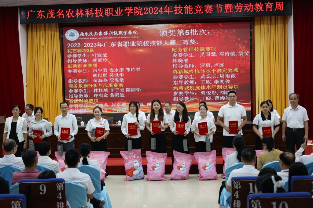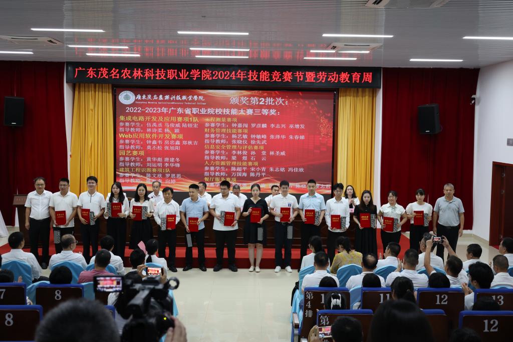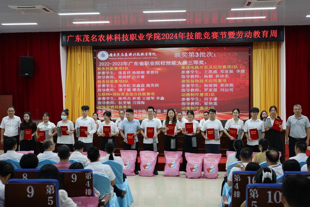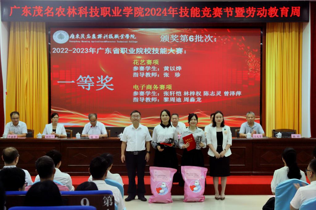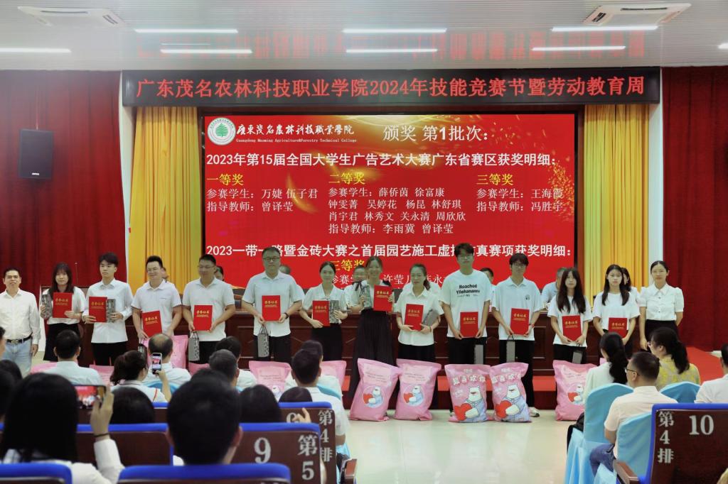 开幕致词后,学院领导和企业代表为学院2022-2023年度广东省职业院校技能大赛、全国大学生广告艺术大赛广东省赛、一带一路暨金砖大赛等各赛项获奖师生进行总结表彰,并颁发荣誉证书和奖品。