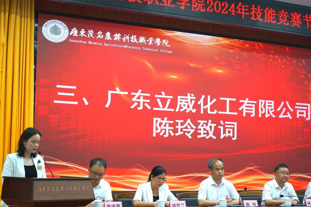 广东立威化工有限公司企业代表陈玲在致词中肯定了广东茂名农林科技职业学院取得的办学成效,并高度认可学院近30名学生在企业实习期间的优秀表现。