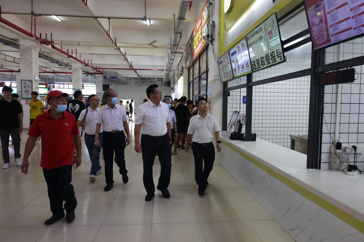 5月30日,茂名市委常委、副市长朱海龙带队到我院食堂检查菜品质量、服务质量、用餐环境等方面的情况。学院党委副书记、院长林里泉,副院长陈列陪同检查。