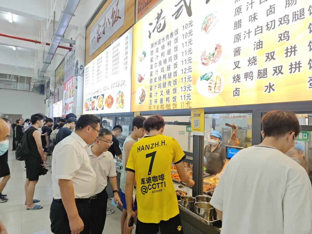 朱海龙首先查看了食堂的菜品质量、菜品价格、服务质量、用餐环境等,随后深入后厨,检查了饭堂备餐全过程。