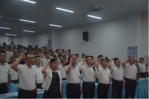 大会在庄严的国歌声中拉开帷幕。表彰会伊始,全体与会党员在党委书记林业强的带领下,重温入党誓词,进一步坚定为党的事业奋斗终身的信念。