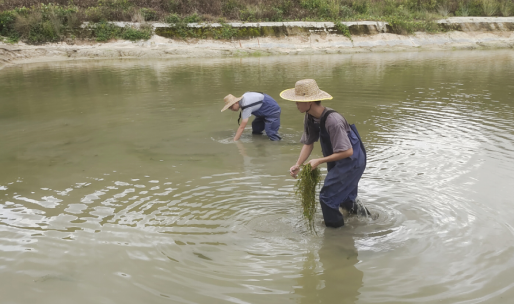 上图:开展水草的种植指导