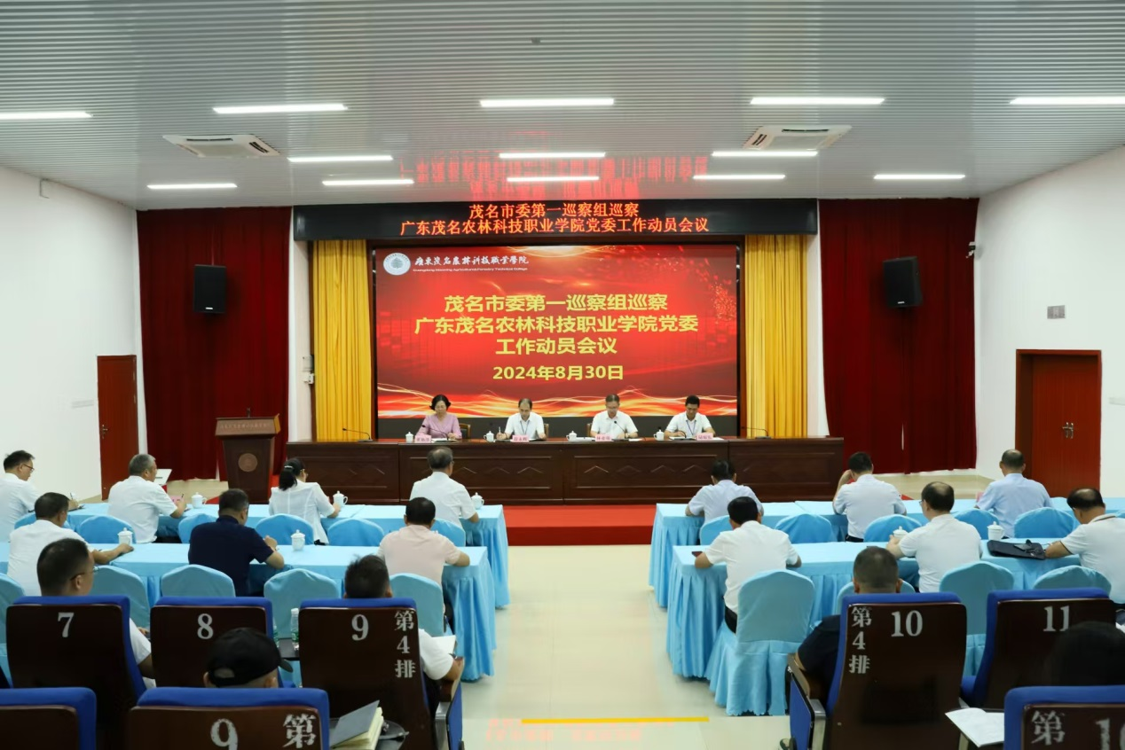 根据市委关于巡察工作的统一部署,2024年8月30日,十二届市委第六轮第一巡察组巡察广东茂名农林科技职业学院党委工作动员会召开。会前,巡察组组长符永辉主持召开与广东茂名农林科技职业学院党委书记林业强、党委副书记、院长董艳清的见面沟通会。动员会上,巡察组组长符永辉通报了巡察任务和工作安排并就巡察工作提出要求,学院党委书记林业强主持会议并作表态发言。