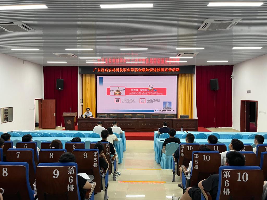 为了增强新生的反诈骗意识,提高学生安全防范能力,帮助建立正确的金融观念,提高金融素养,更好适应校园学习和社会生活,9月22日晚上,我院举办了一场别开生面的“开学反诈第一课”金融知识进校园活动。此次活动由学院联合建设银行茂南支行举办,得到了学院广大师生的支持和积极参与。该行行长冼烁、副行长邓中原,农林学院学生工作部负责人、财务部负责人、各系新生班辅导员和新生代表等近200人参加了当晚的活动。