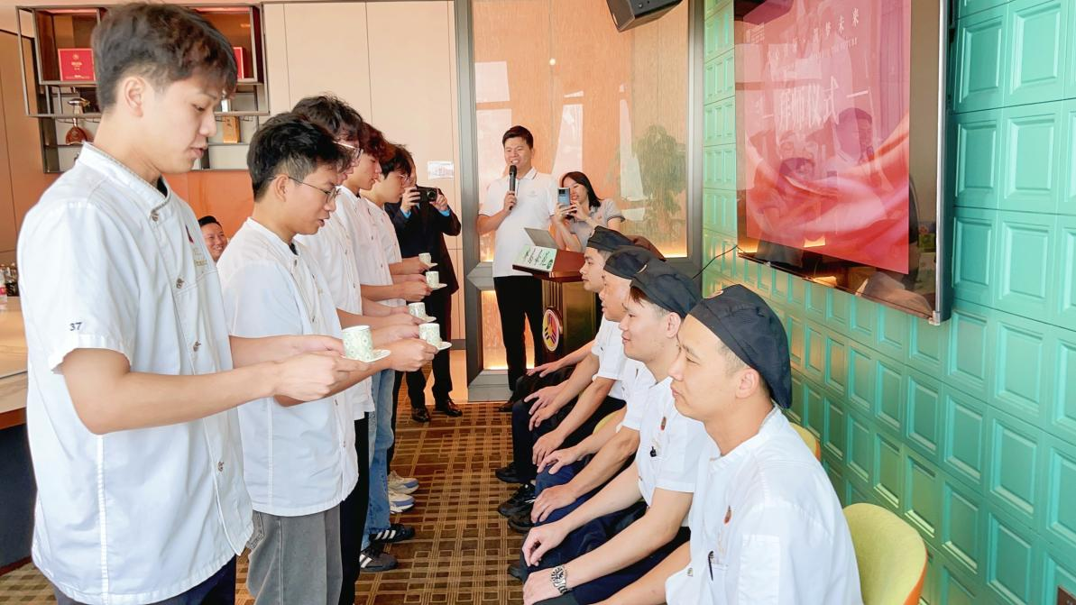 活动现场,举行了隆重的拜师仪式,学生行鞠躬礼、师傅喝拜师茶,42名烹饪工艺与营养专业学生向企业师傅“拜师学艺”。