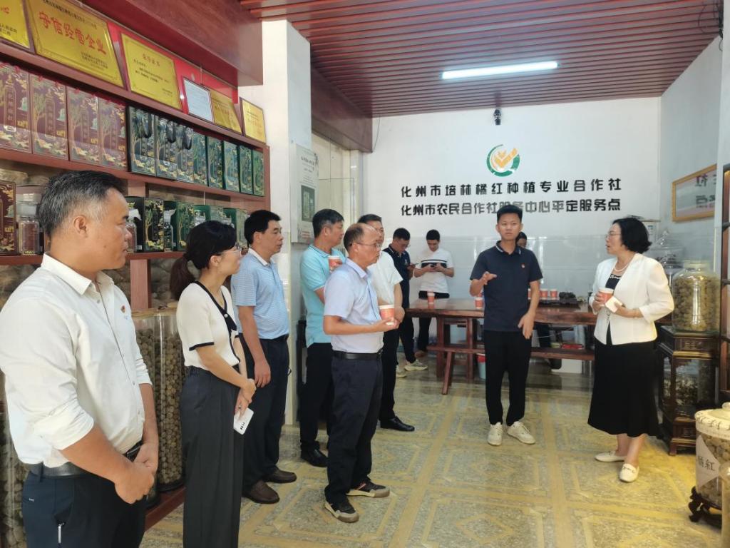 当天,董艳清一行先后到广东深融生态产业有限公司、培林橘红合作社、那宾村化橘红种植基地调研,实地察看企业和合作社的化州橘红科普馆、生产车间、电商直播间、包装间、成品仓库以及标准化种植示范基地等,详细了解化橘红种植分布、加工流程、市场销售、公司产品种类及联农带农等情况。