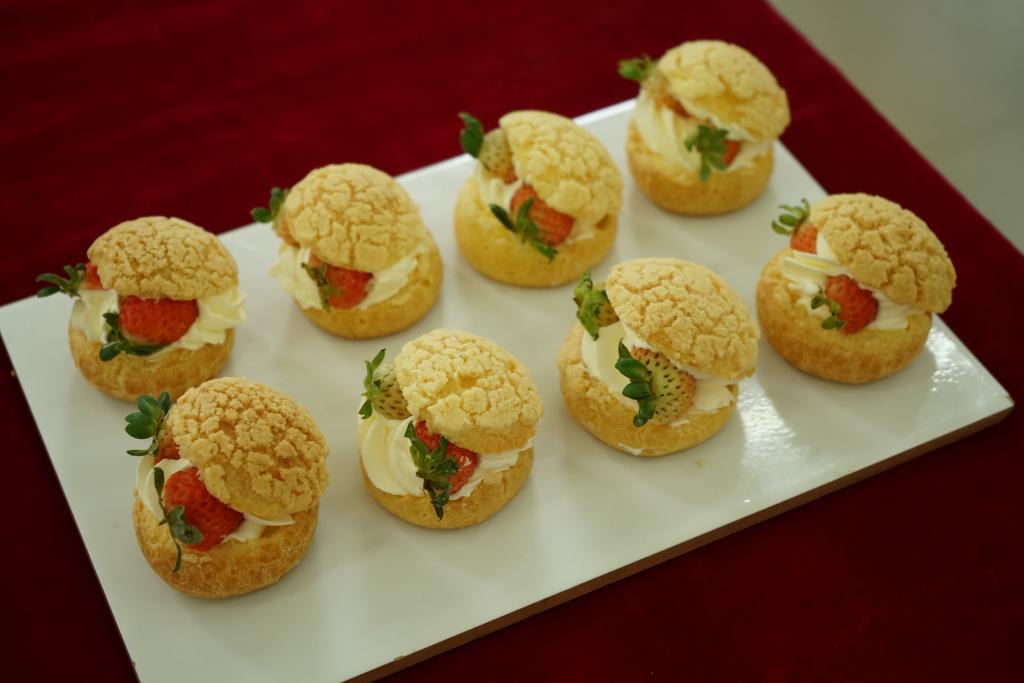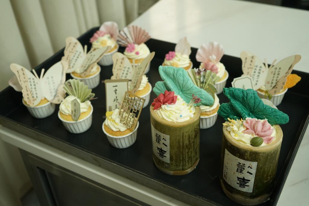 本次美食节,学院食品工程系20余名烹饪工艺与营养、中西面点工艺、食品智能加工技术等专业教师纷纷拿出看家本领,带领40余名学生用精湛的厨艺制作了慢浸氹仔鱼、曹江头菜蒸扣肉、化州隔水蒸鸡、化州牛杂、山姜焗乳鸽等茂名市“10道必点高凉菜”;发籺、小米糕、簸箕炊、生菜包、香芋糕、田艾籺、寿桃籺、年例鸡翅等超2000份茂名特色美食;“农林美食节”主题蛋糕、中国风果酱画、花系奶油蛋糕、祝福系列纸杯蛋糕等系列展示产品;红丝绒蛋糕卷、芒果布丁、奶油泡芙、化橘红饮品等甜品饮品应有尽有。