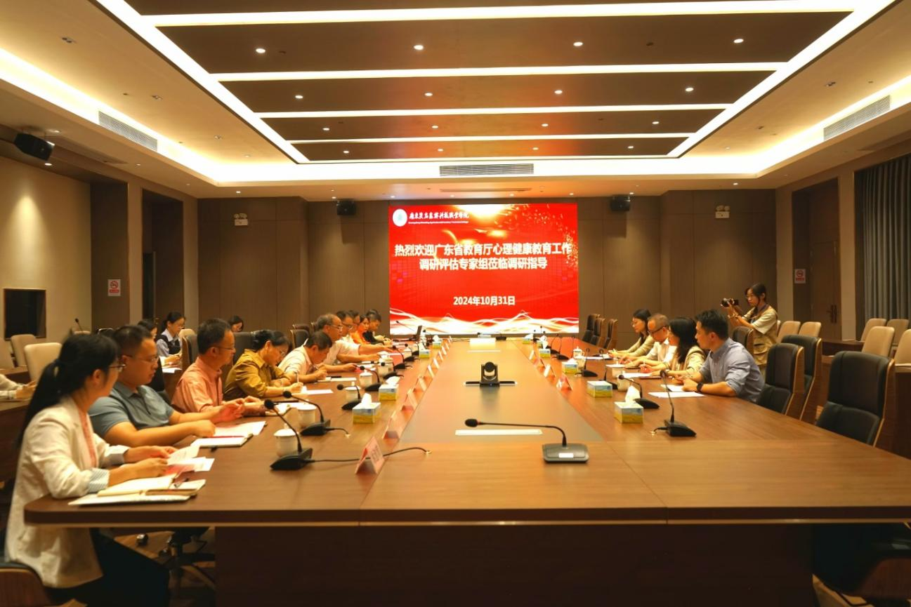 10月31日下午,广东省教育厅心理健康教育工作调研评估专家组一行四人到我院开展实地调研评估工作。本次专家组由华南师范大学心理学院副院长范方教授任组长。学院党委专职副书记陈列主持汇报会和反馈会,学院相关职能部门负责人和各系党支部书记、心理健康教育与咨询中心专职教师、各系负责心理健康教育工作的辅导员等30余人参加会议。