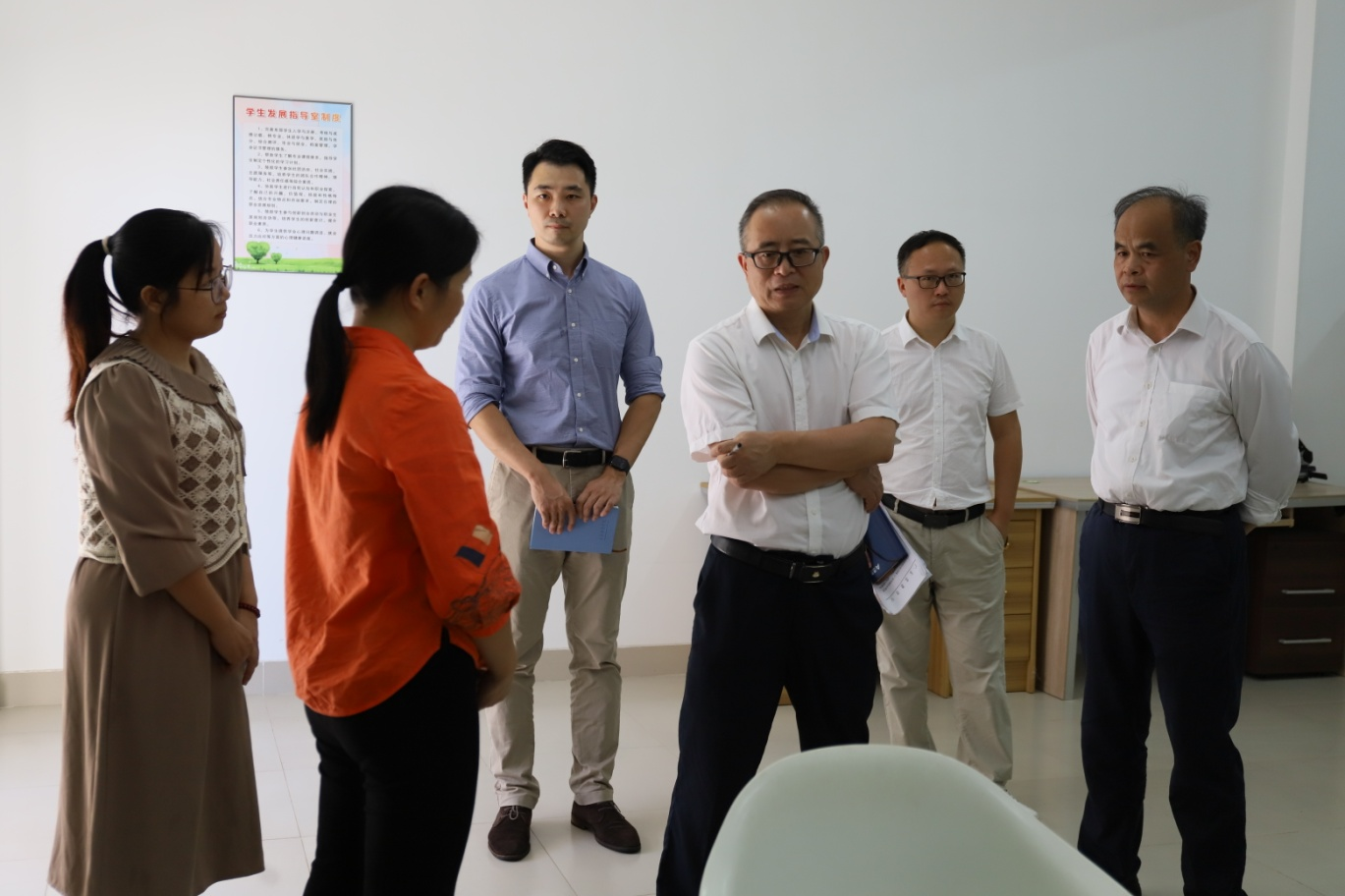 上图:专家组实地察看心理健康教育工作场地和设备设施