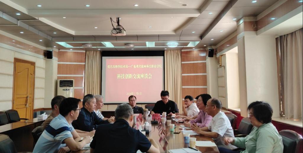 2024年11月8日,为创新我院科研管理,激发科研人员创新活力,推动科研水平提升,学院党委副书记、院长董艳清一行前往茂名市科学技术局进行科研管理创新交流学习。市科技局党组书记、局长吴鹏及相关科室负责人等出席了座谈会。