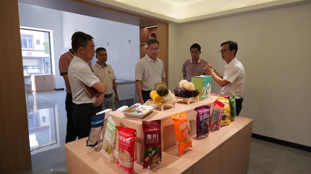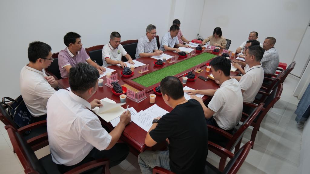 林业强一行分别参观了金塘村委会强村公司、广东种成农业科技有限公司,听取了金塘村委会罗水渠书记关于强村公司的筹建运营情况及村委应用“粤治美”平台进行乡村治理取得显著成效的情况介绍,并与茂南区农业农村局、金塘镇政府、金塘村委会及公司领导开展交流座谈,双方就乡村振兴、服务百千万工程、绿美茂名、人才培养、产教融合、校企合作等多个方面深度交流,达成共识。林业强介绍了学院的办学目标定位和各专业的建设情况,结合学院资源优势,在服务乡村振兴人才孵化方面提出了“人才培养模式、地方农业产业服务支持、绿美广东绿美茂名行动、农特产品直播电商销售、创意品牌设计、食品安全与农产品流动”等六方面课题,并表示学院将积极搭建与地方政府、企业的合作平台,以提升学生的专业技能和创业就业成功率为目标,创新人才培养模式,积极探索学院服务乡村振兴及“百千万工程”的有效途径。