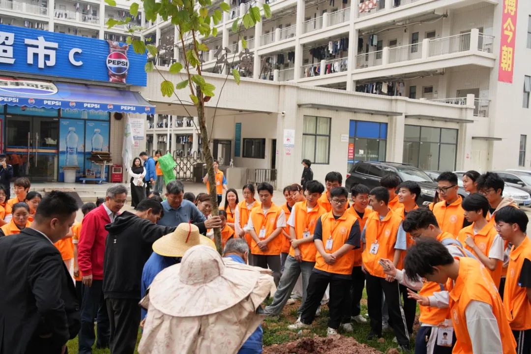 活动现场,师生们热情高涨、干劲十足。大家分工协作,挥锹铲土、扶苗填坑、培土围堰、提桶浇水……经过两个多小时的辛勤劳动,85株宫粉紫荆树苗迎风挺立,为初春的校园增添了勃勃生机。